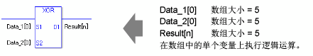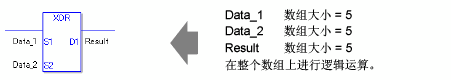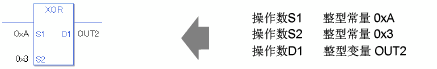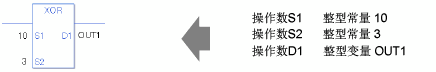 XOR和XORP指令是异或指令。当XOR指令运行时,它对S1和S2执行逻辑异或运算并将结果保存在D1中。XOR和XORP指令总是处于接通状态。使用XOR和XORP指令时,如果为操作数S1、S2和D1指定的变量类型不同,就会发生错误。 请为操作数S1、S2 和D1指定相同的变量类型。