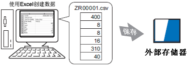 可以用Microsoft Excel编辑并保存从控制器/PLC传输到外部存储器的数据。当在Microsoft Excel中打开CSV文件时,会显示如下内容: