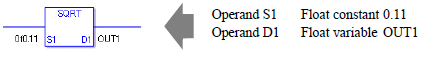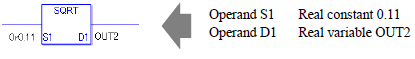 The SQRT/SQRTP instructions both calculate the square root. When the SQRT instruction is executed, the square root of S1 is calculated and the value is saved in D1.