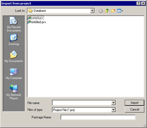 The [Import from project] dialog box appears. Select the project to register as a package.