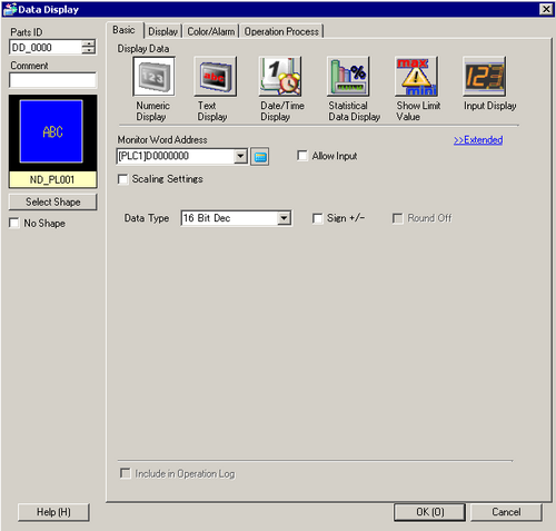 As needed, specify the Data Display's color and text on the [Alarm/Color] tab and [Display] tab, and click [OK].
