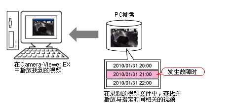 如果未在Camera-Viewer EX中录制视频,则不能指定播放故障发生时间的相关视频。