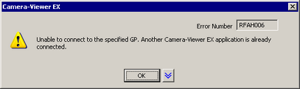 一台人机界面可连接一个Camera-Viewer EX。一台人机界面连接到Camera-Viewer EX时,如果另一个Camera-Viewer EX试图连接人机界面,会弹出如下错误消息。