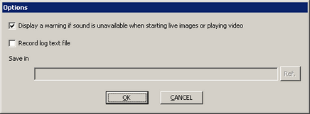 勾选此复选框,当开始显示实时视频或播放视频文件时,如果声卡或驱动程序未正确安装,则会弹出一条警告消息。如果弹出了警告消息,显示的实时图像或播放的视频将没有声音。