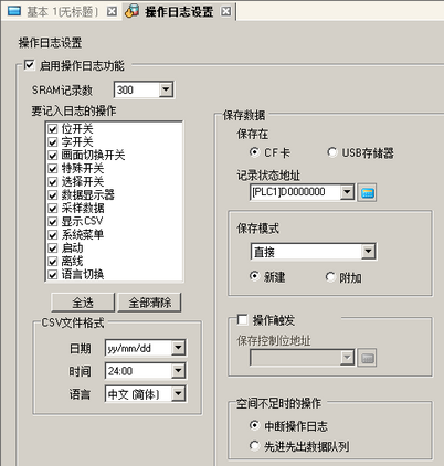[通用设置]-[操作日志设置]对话框打开。勾选[启用操作日志功能]对话框。