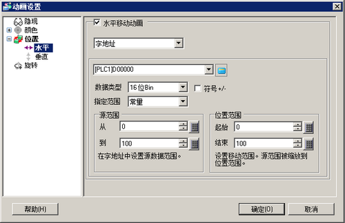 将弹出[动画设置]对话框。在左面板上,展开[位置]并选择[水平]。