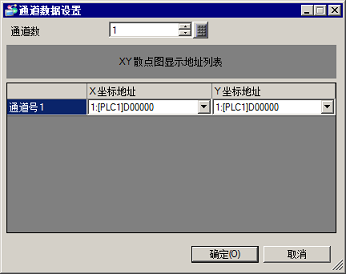 打开[通道数据设置]对话框。从指定的采样组中设置您想显示为XY图表的线条的地址和地址数(通道数)。
