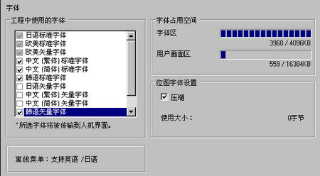 在[工程中使用的字体]下勾选[中文(简体)矢量字体]复选框,添加字体。