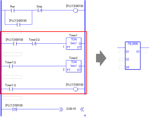 如需将现有逻辑程序的一部分注册为功能块(FB),请执行以下操作: