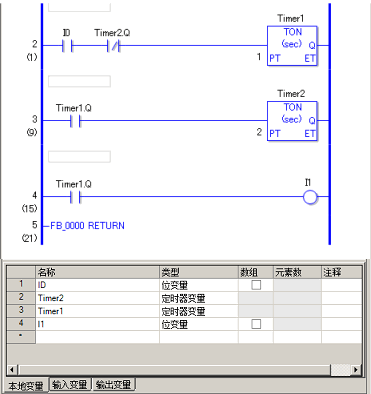 输入和输出变量不可指定数组元素(X[0])和结构元素(Timer.PT)。