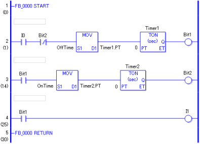S1:闪烁开始位 S2:OFF持续时间(秒) S3:ON持续时间(秒) D1:输出位 |