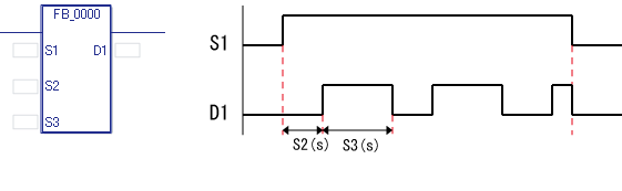 此功能块的功能是:当指定位置ON时,输出一个交替ON和OFF的闪烁信号。