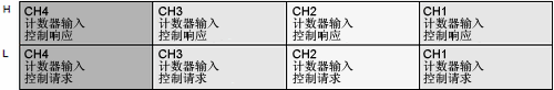 对于[计数器输入控制响应]中分配的变量来说,监视位根据您为其分配高速计数器的CH的不同而有所不同,如下所示。