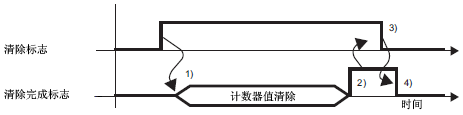 4) 当计数器值清除的请求标志被确认为置OFF时,计数器值清除的完成标志变成OFF。