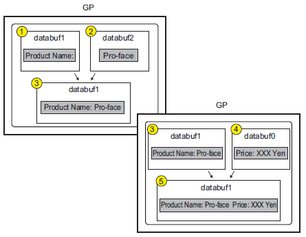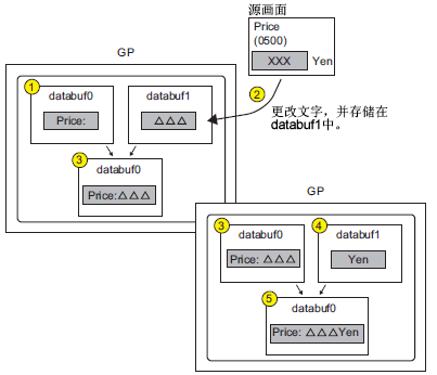 将字符串“产品名称:”和“价格”加入数据缓冲器2中。