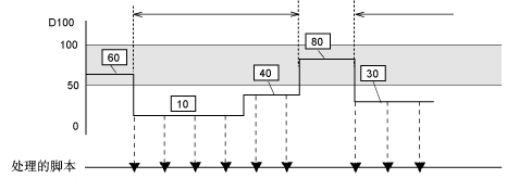 例如:如果触发条件是100 > [D100] > 50,*3脚本将在以下时刻运行。