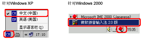 在任务栏点击键盘输入系统图标(对于Windows XP是语言图标),启动中文(PRC)键盘输入系统。