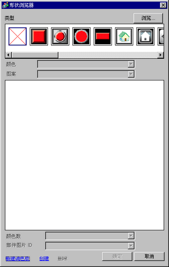 如需为部件选择一幅已注册的图片,请打开部件对话框并点击[选择形状]。在[形状浏览器]对话框中,从[选择形状]中选择注册的部件图像。选择适当的图像并点击[确定]。