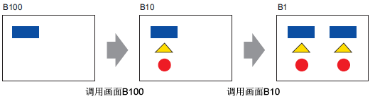 创建工程时,如果计算机内存容量变低,画面采用多层调用画面来设置画面,则可能不会在编辑器上显示嵌套的画面。 但是,一旦传输到人机界面上,则将正确显示。