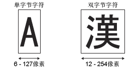 标准大小是一个单字节字符。双字节字符在水平和垂直方向上固定为相等像素。