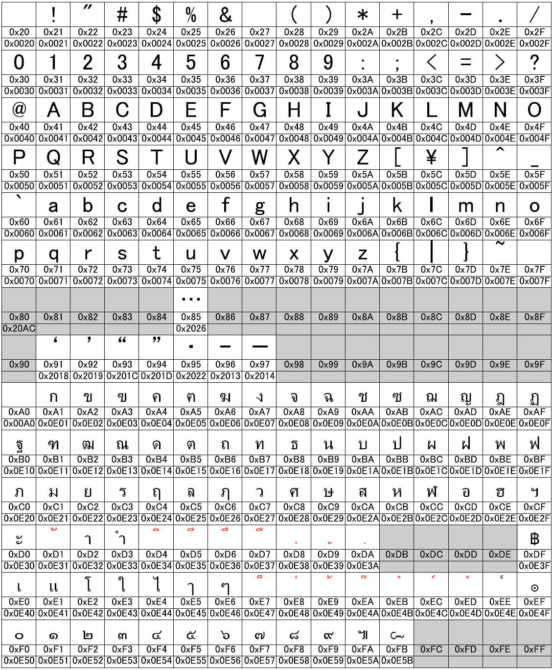6.2.7 泰语矢量字体专用字符列表 - 矢量字体/标准字体