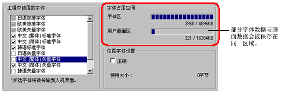 在[工程中使用的字体]下勾选[中文(简体)矢量字体]复选框,添加字体。