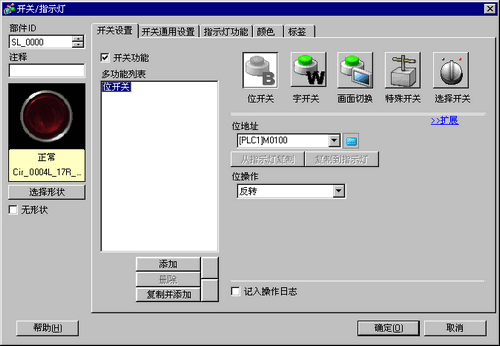 在[部件(P)]菜单上,指向[开关/指示灯],选择[位开关(B)]或点击