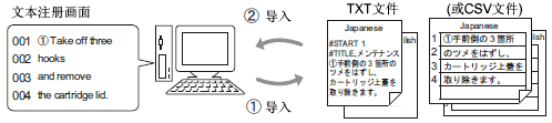 [输入多语言]的语言更改功能关闭后,用于每个文本画面的文件将被输出。