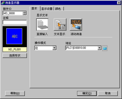 有关部件放置方法和地址、形状、颜色和标签设置方法等的详细信息,请参阅部件编辑题目。