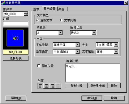 如果您选择了一条未定义的消息,那么消息显示器不显示任何内容。例如,如果消息状态数量为16但只定义了状态0至3的消息,则状态4至16就只显示空消息框。