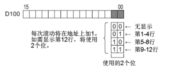 设置一个用于指定位的位地址或字地址。如果您设置位地址,将会分配顺序地址的[位数]以设置显示起始行。如果您设置字地址,将使用字(16位)中顺序位的[位数]。