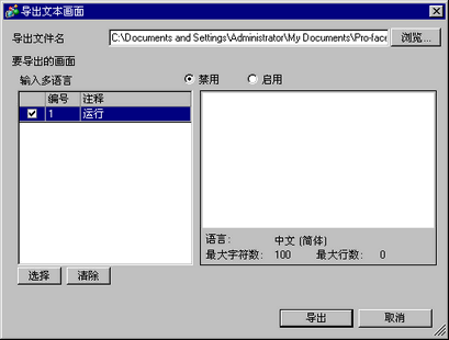 从表到导出,选择带语言切换功能的表。对于您想导出的画面,选择靠近文本画面编号的复选框。