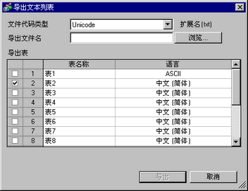 要同时导出多种语言,请选择[Unicode]。当选择了[Unicode]时,将以文本文件格式(*.txt)导出文件。