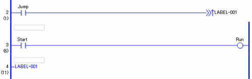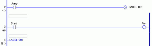 当常开变量Jump置ON时,将执行JMP指令,程序将跳转第四行,其标签名为:“LABEL-001”。