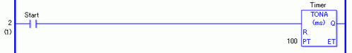 当常开指令变量置ON时,因为触发了TONA指令,经过时间 .ET将按指定的时间单位增加。