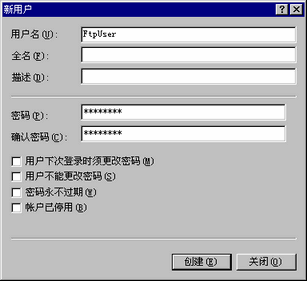 本节介绍创建新的本地用户“FtpUser”的步骤。