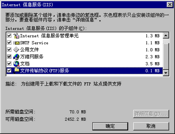 选中[FTP(文件传输协议)服务]并按[确定]按钮。