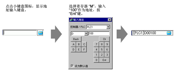 如果不首先注册符号,指定地址时您可以在地址控制栏直接输入符号名称。输入符号后,按[Enter]键。当弹出如下消息时,点击[注册为符号]。一经注册,您就可以在通用设置的[符号变量]中查看符号。