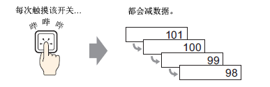 每次按下开关时,将一个负常量(例如,-1)加到指定字地址的当前值(例如,101)上。
