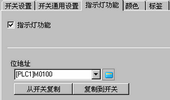 在[指示灯功能]选项卡上勾选[指示灯功能]复选框并点击[从开关复制]。在[位地址]中将显示与[开关功能]选项卡上指定的地址一样的地址。