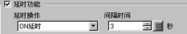 在[开关通用设置]选项卡上勾选[延时功能]复选框,将[延时操作]选择为[ON延时]。将[间隔时间]设置为3秒。