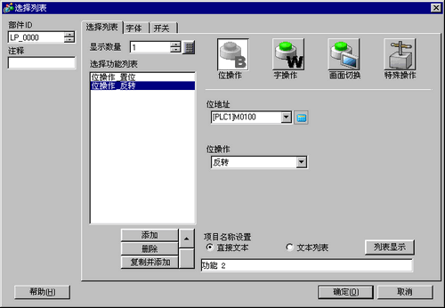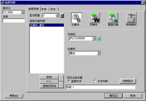 在[位操作]中选择[复位],位开关功能设置完成。