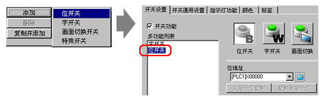 从[部件(P)]菜单中选择[开关/指示灯(C)],然后选择[字开关(W)]或点击
