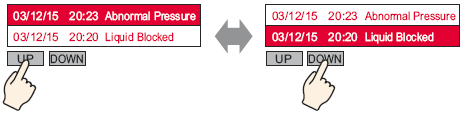 根据滚动方向,按照[报警]中设置的注册号(行号)的升序显示报警消息。
