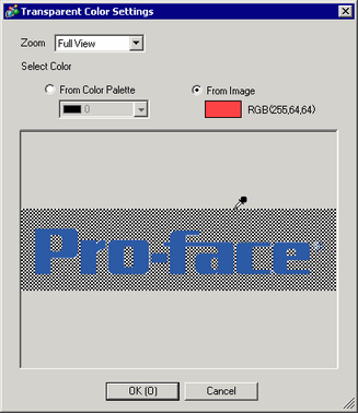 选择[透明]复选框,使[设置]按钮有效。点击该按钮,然后在[透明色设置]对话框中使用下拉菜单来选择缩放比例,并选择图像上需要变透明的颜色。该功能对于将已粘贴图像上的背景色变成透明非常有用。