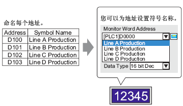 您可以为每个地址指定名称。(该名称被称为“符号”)。部件和其他对象都可以使用地址栏中的符号名称。必要时您可以更改与符号关联的地址,而不会影响使用该符号的部件和其他对象的地址设置。