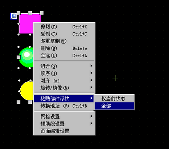 当复制部件的状态比粘贴部件的状态多时,只粘贴对应状态的形状。如果粘贴部件的状态比复制部件的状态多,在复制部件中无对应状态的状态将保持不变。