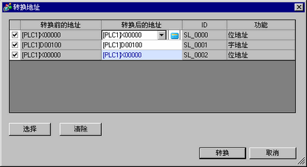 即使控制器名称相同,如果[转换后的地址]中设置的地址是一个位地址,只能转换位地址;如果它是一个字地址,将只能转换字地址。