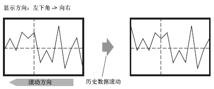 在滚动过程中当显示最旧的数据(这里的左轴上)显示时,指针可以移动,但图表将保持固定。