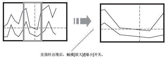 如果在指针显示后触摸缩放显示开关,请将指针的Y轴设置为中心,并在水平方向上缩放。